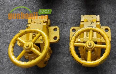阻鏈器用來(lái)在緊鏈過(guò)程中卡阻輸送機上的刮板鏈,使鏈條張緊。將阻鏈器放在過(guò)渡槽的預設孔中,點(diǎn)反車(chē),使上鏈緩緩運行至阻鏈器時(shí)受到機械阻力而使刮板鏈張緊;鏈條接好后,逆時(shí)針轉動(dòng)手輪松開(kāi)緊鏈器,接通動(dòng)力源,點(diǎn)正車(chē)后,撤去阻鏈器。